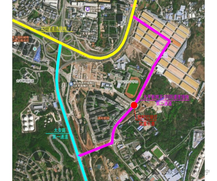在安宁安建市政建设投资有限公司和云南中冠建材家居市场管理有限公司的鼎力支持下,太平新城至320国道连接线于今天上午8:00正式通车运行!